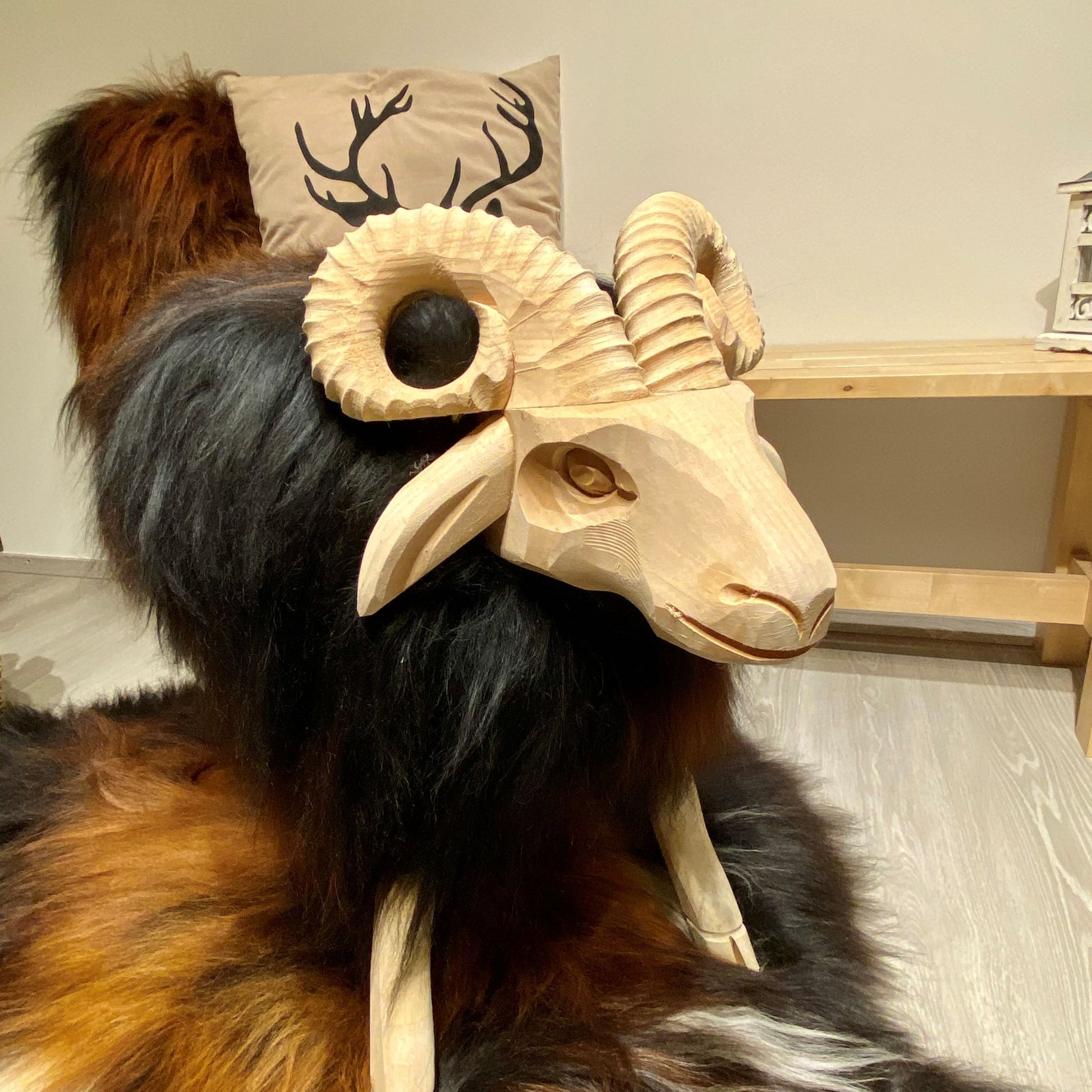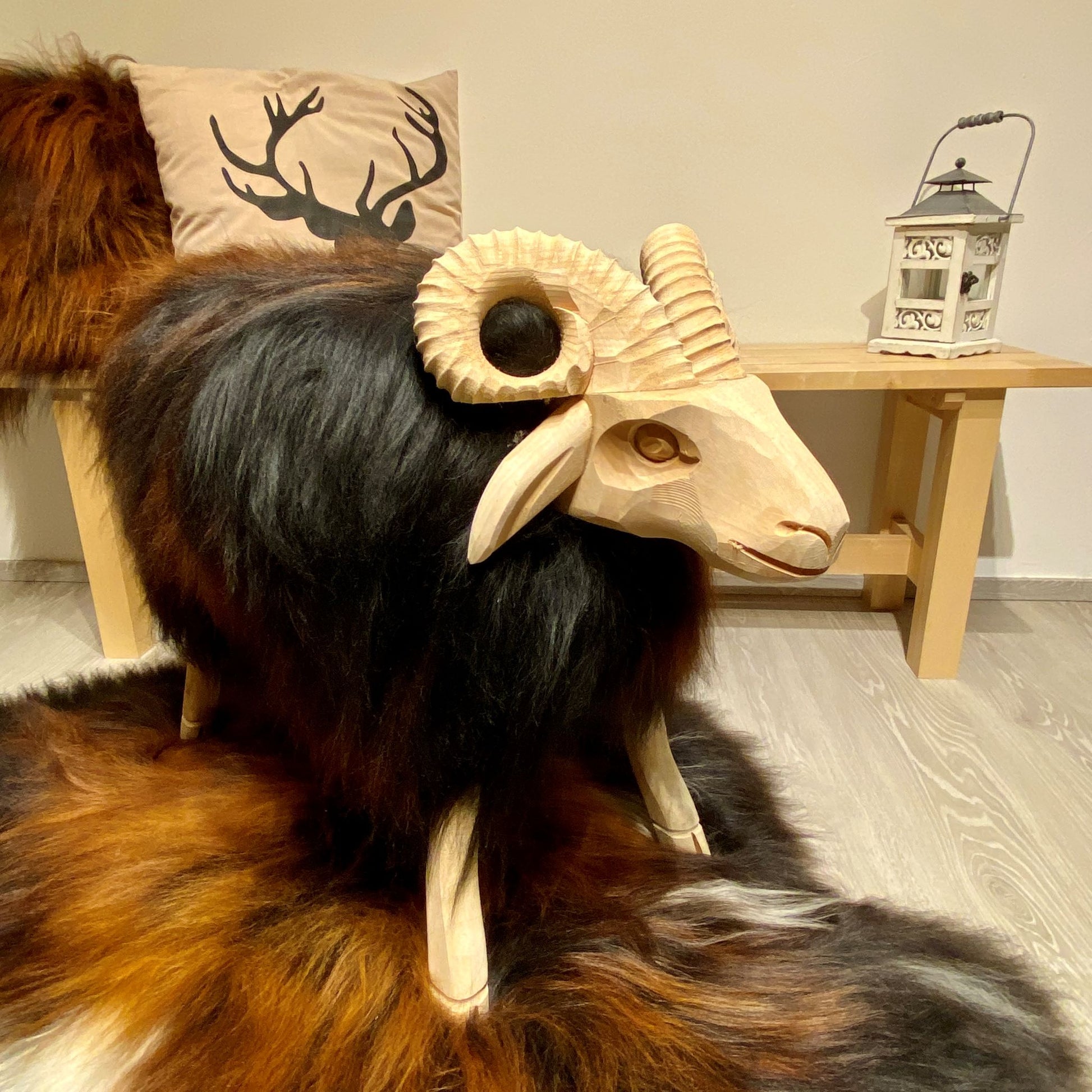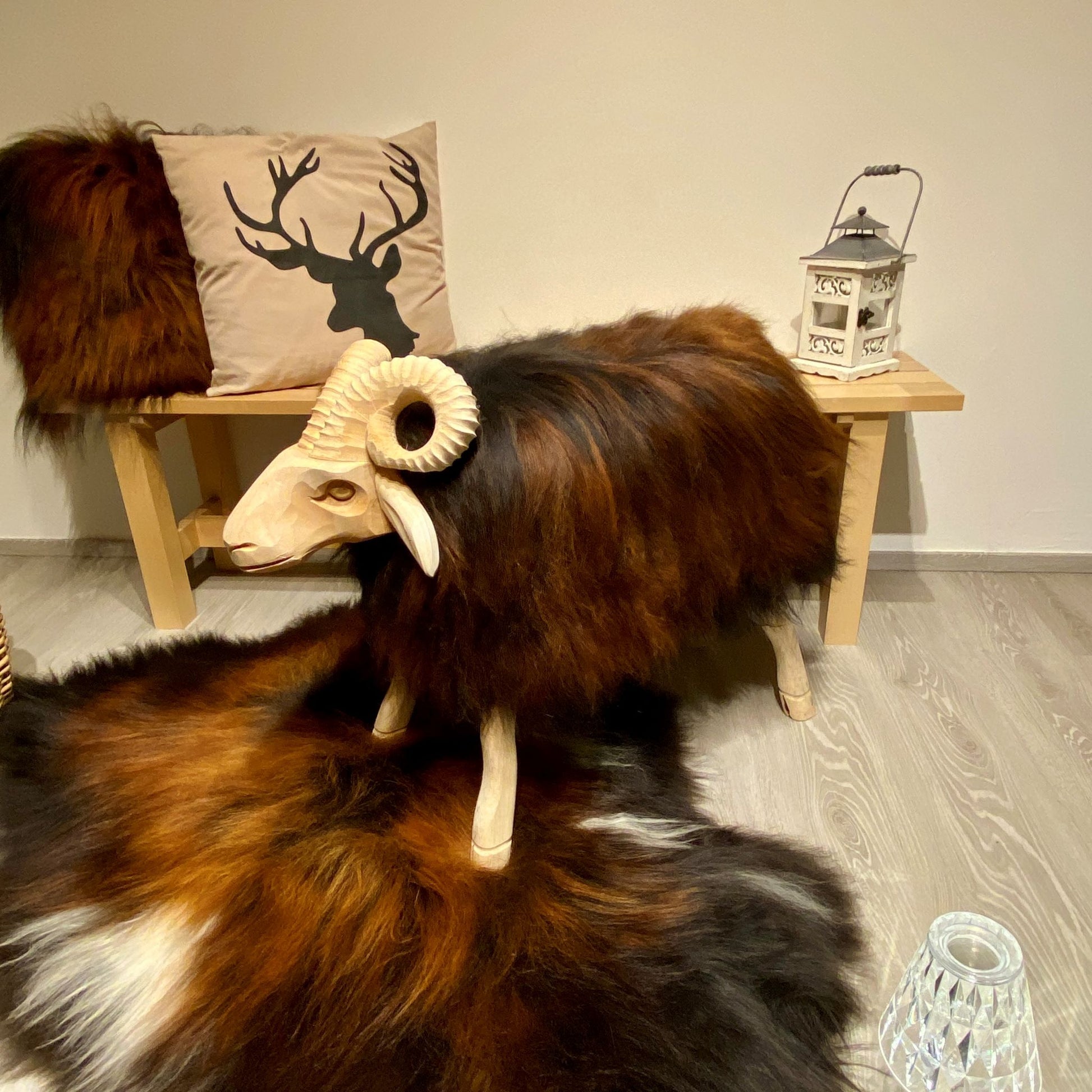 Geschnitztes Schaf mit echtem Schafspelz Model: Erde und Feuer