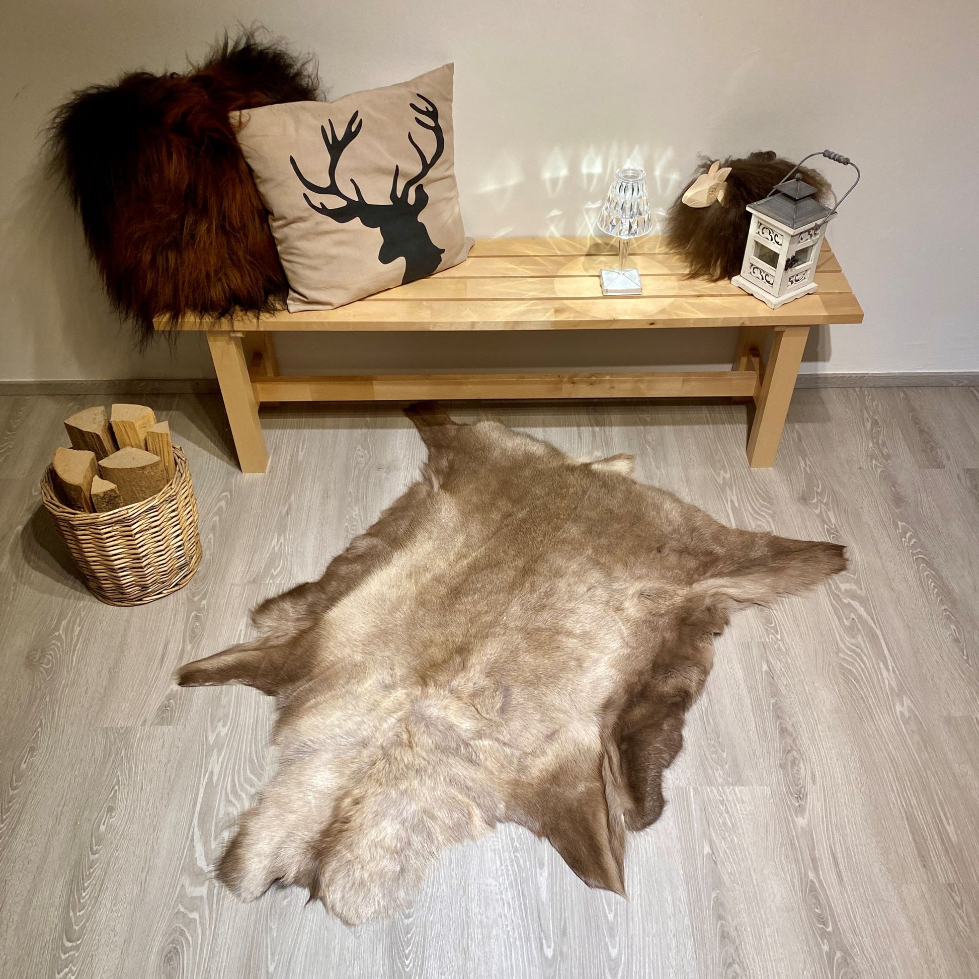 Unsere Rentierfelle werden sorgfältig ausgewählt und stammen von nordischen Rentieren, die in freier Wildbahn leben. Jedes einzelne Fell ist einzigartig und strahlt eine unvergleichliche Schönheit aus. Die prächtige Kombination aus weichem, dichtem Fell und einer atemberaubenden natürlichen Farbpalette von hellen Cremetönen bis hin zu tiefen Braun- und Schwarznuancen verleiht jedem Raum eine warme und gemütliche Atmosphäre.